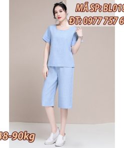 Đồ Bộ Ống Rộng Linen Form Rộng 90Kg Cho Mẹ Trung Niên U50 U60 BL018