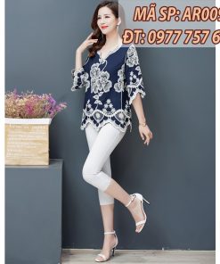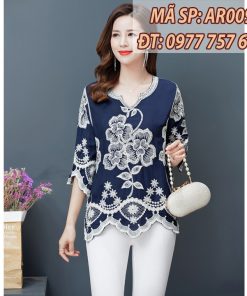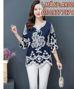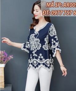 Áo kiểu phối ren trẻ trung dưới 70kg cho phụ nữ trung tuổi AR009