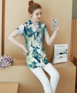 Áo sơ mi hoa nhí trung niên form rộng giấu bụng SM001