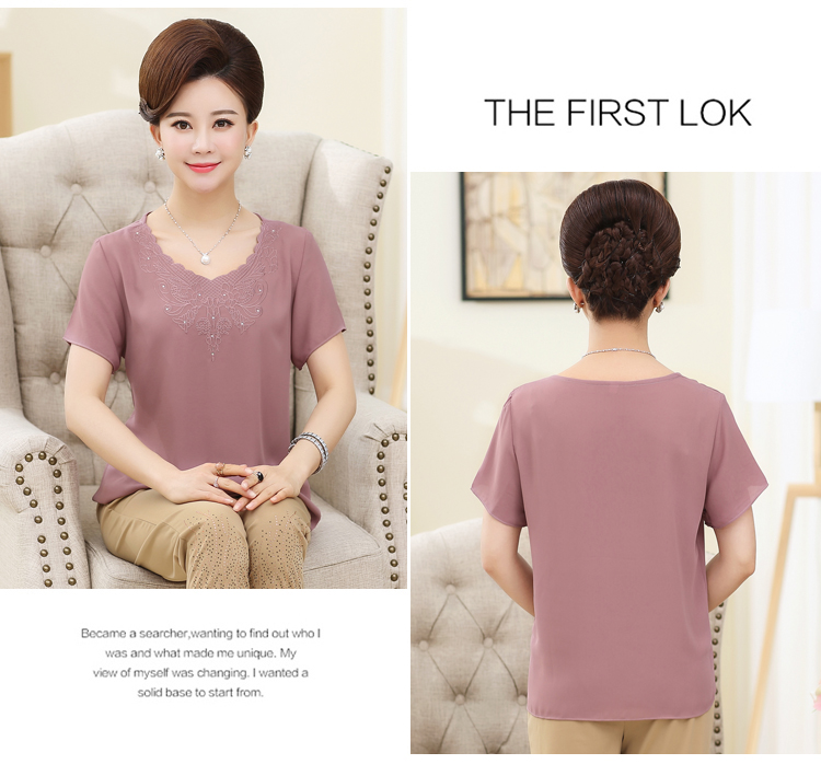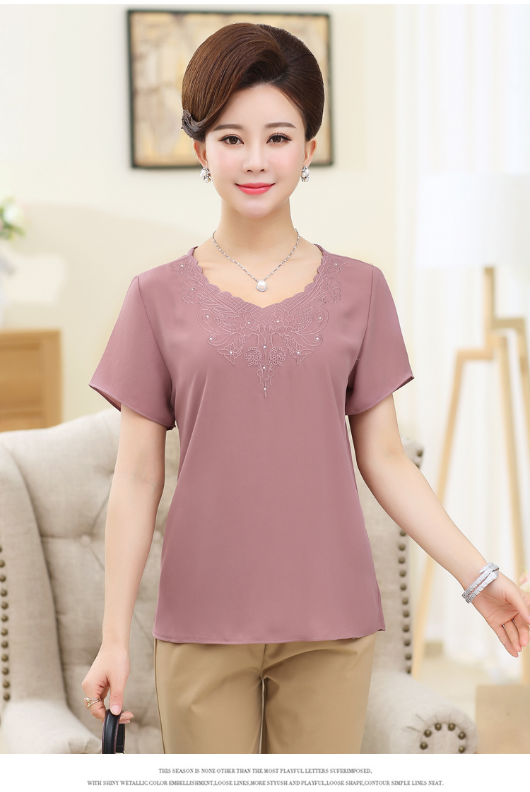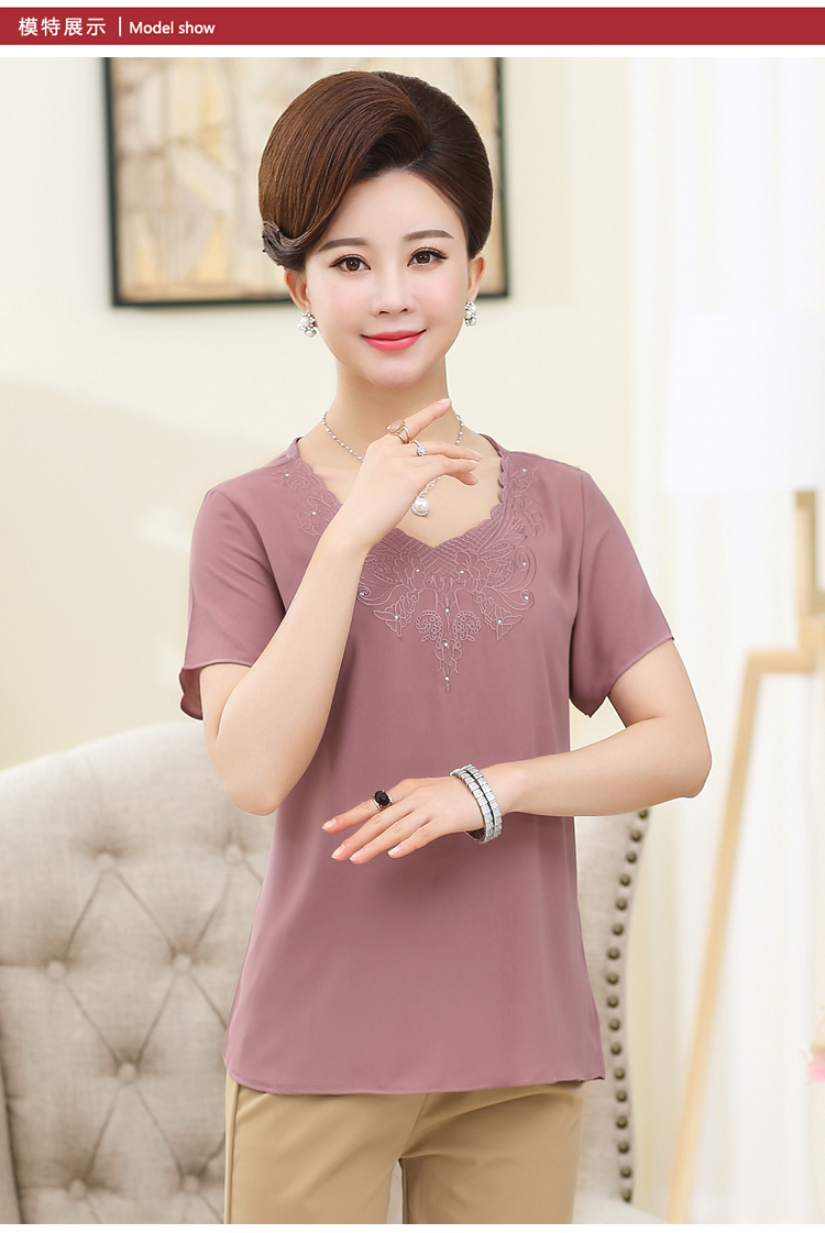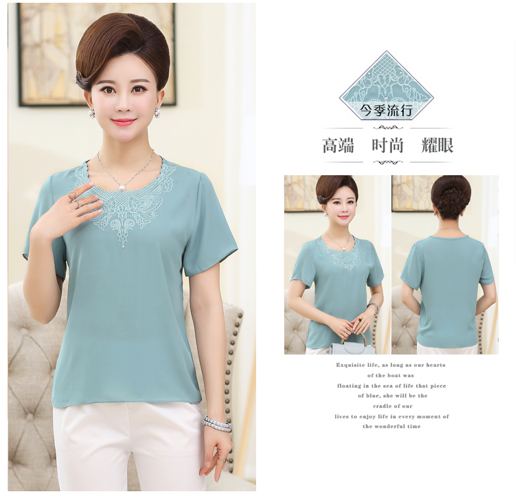 Mô tả ngắn: Áo voan tay ngắn cổ tròn thêu họa tiết dành cho phụ nữ tuổi trung niên. Chất liệu voan mỏng, nhẹ, thoáng mát thích hợp với mùa hè nóng bức.