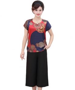 Bộ đồ thời trang quần áo ống rộng trung niên cho mẹ chất lụa thoáng mát (BN006)