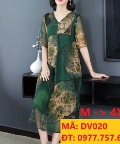 - Mẫu đầm DV020 chất liệu voan hai lớp rất duyên dáng, có 5 màu đều đẹp phù hợp với lứa tuổi trung niên. Có size từ XL tới 4XL.