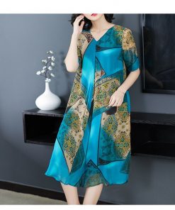 Đầm suông trung niên voan lụa mềm mại cho mẹ DV020