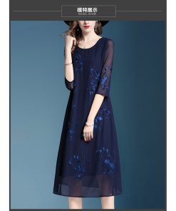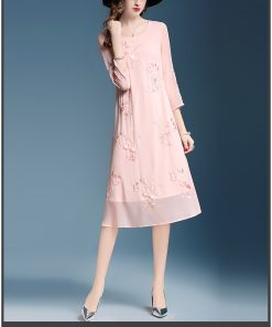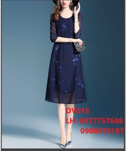Đầm voan đầm dài qua gối đầm thêu trung niên dv015