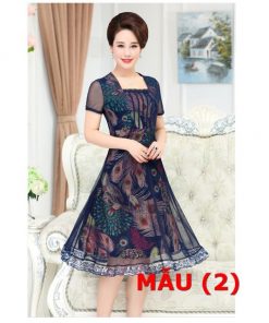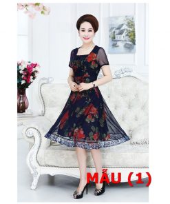 Đầm xòe chữ A trung niên ngoại cỡ DT001