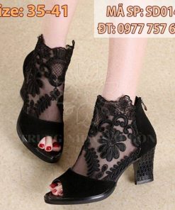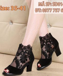 Giày cao gót sandal ren lưới cho mẹ trung niên SD014