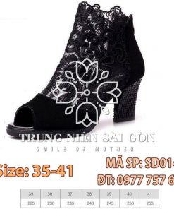 Giày cao gót sandal ren lưới cho mẹ phụ nữ trung niên SD014